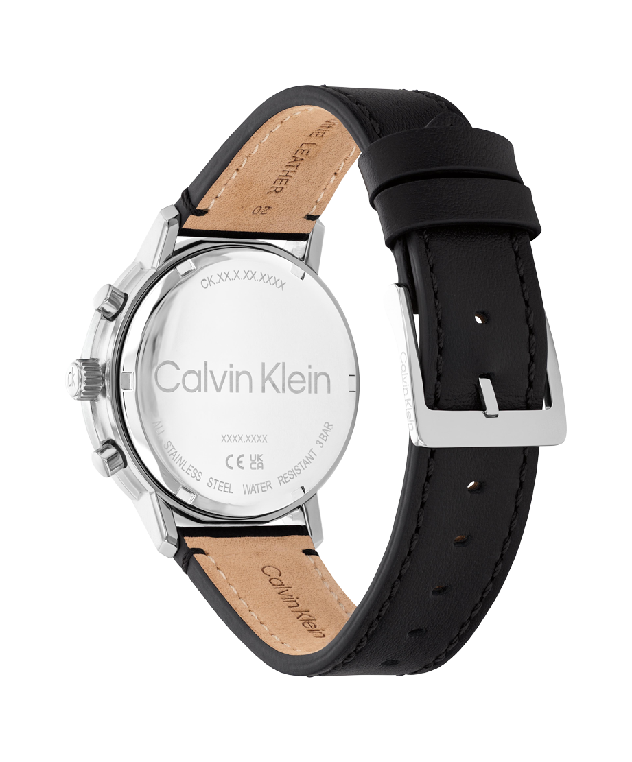 Calvin Klein orologio in acciaio con cinturino in pelle nero