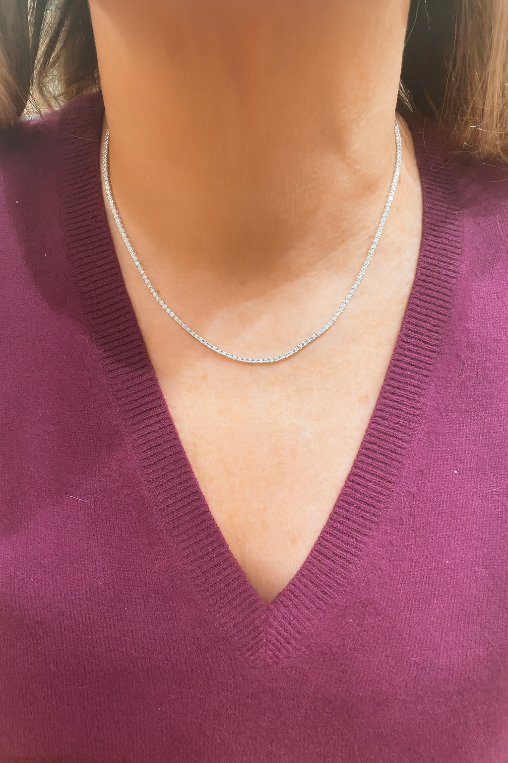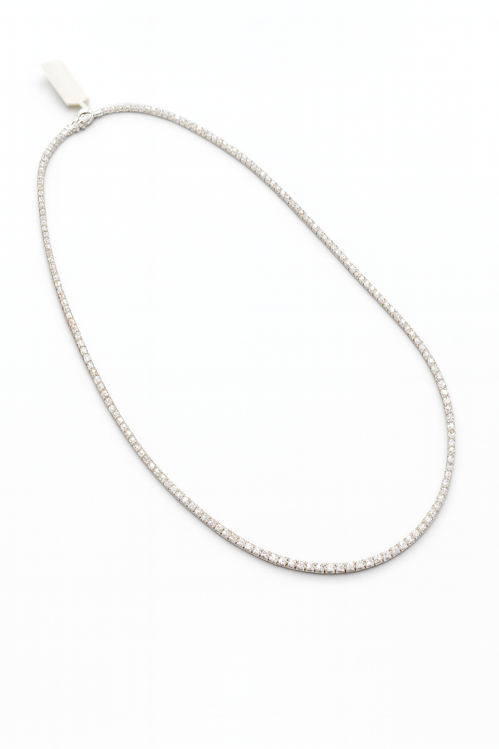 Un tripudio di diamanti a incorniciare il decollete grazie a questo girocollo dalle linee morbide capace di seguire i movimenti con estrema eleganza