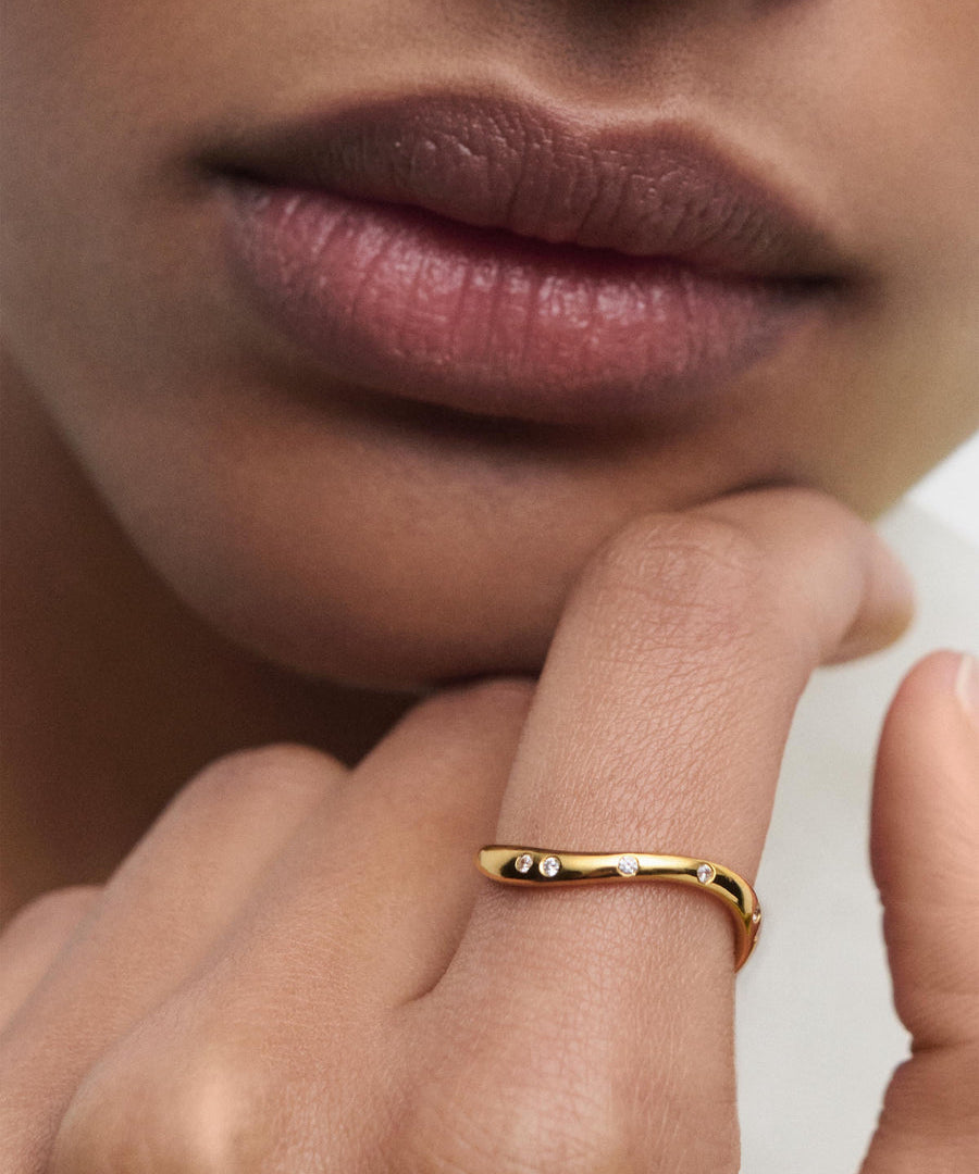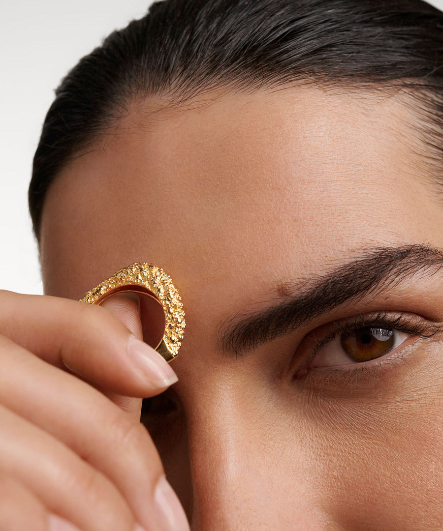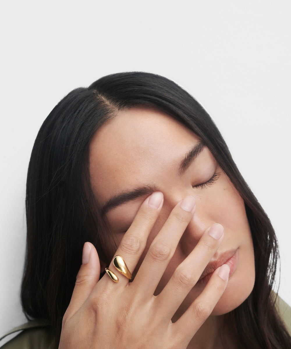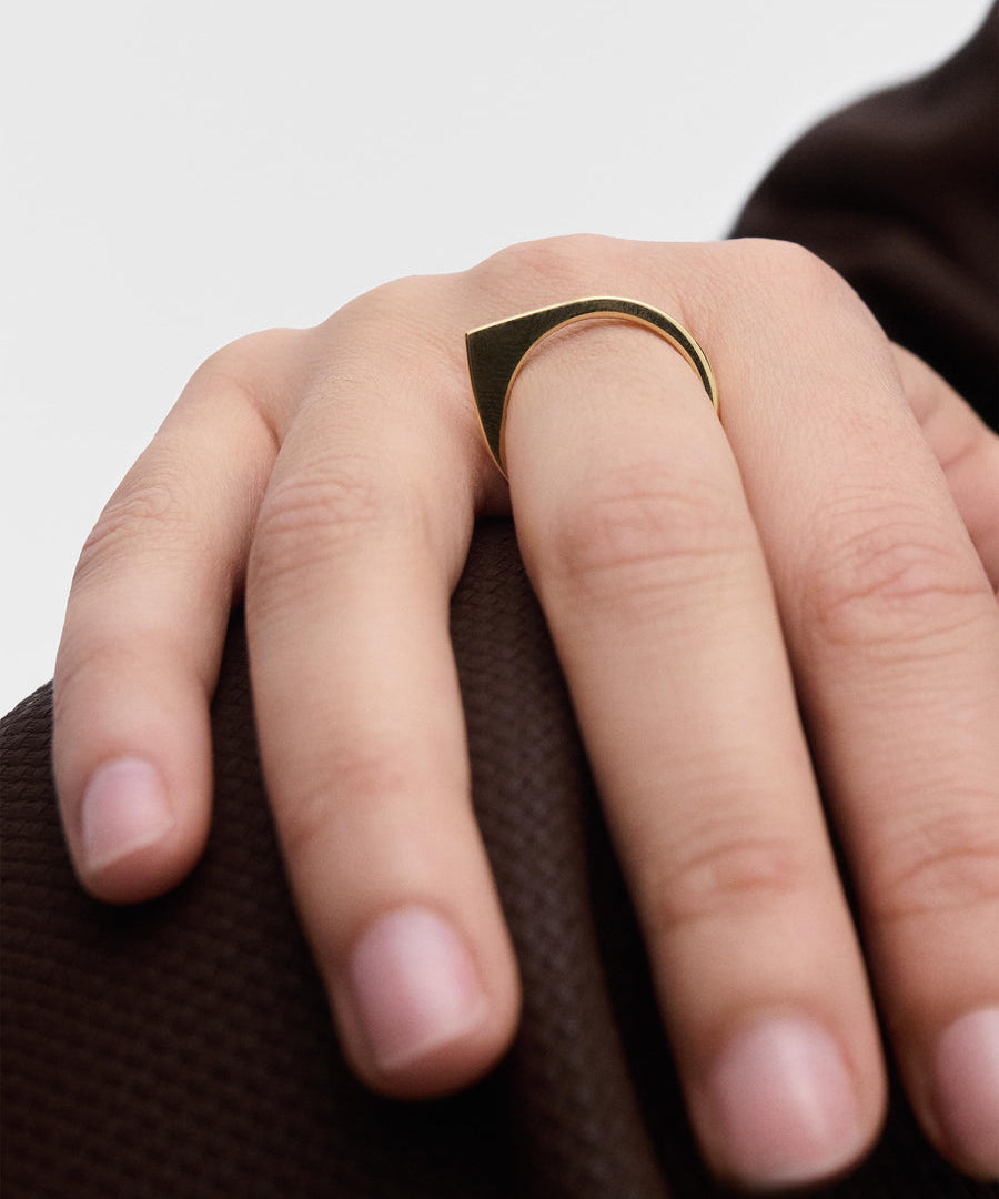 Un gioiello versatile, ideale per essere indossato da solo come protagonista assoluto o abbinato ad altri anelli per un look contemporaneo e personale.