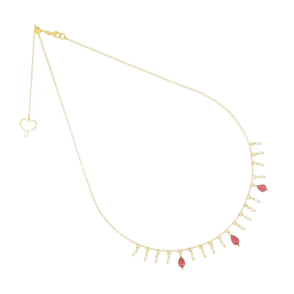 Collana con Gocce in Argento 925 Placcato Oro, Perle e Pietre Rosa