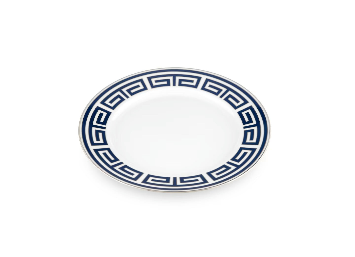 Piatto piano in porcellana con decoro blu zaffiro. CollezioneLabirinto di Gio Ponti.